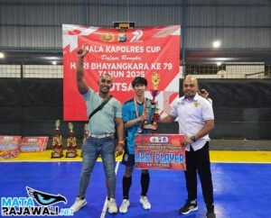 matarajawali.net – Situbondo; Turnamen Futsal Piala Kapolres Situbondo 2025 dalam rangka Hari Bhayangkara ke 79 berlangsung seru dan penuh aksi hingga laga final yang mempertemukan dua tim unggulan: AFB Utama 2 melawan Jaya Baru.