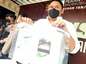 Kasat Reskrim Polres Pelabuhan Tqnjung Perak AKP Ryzi Wicaksana menunjukan