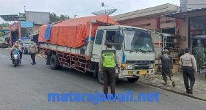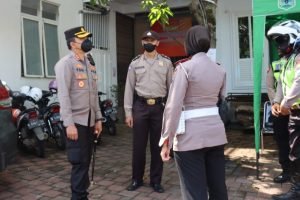 Kapolres Batu,AKBP Yogi (depan) meninjau langsung Pos Penyekatan Kendaraan Pembawa