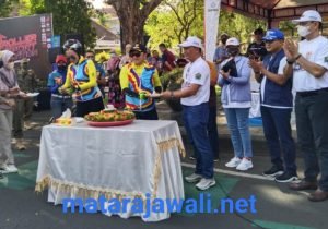 Walikota Malang,Sutiaji saat menyerahkan tumpeng pada ketua Perserosi kota Malang