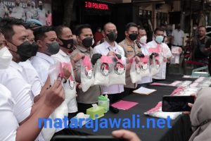 jajaran Satresnarkoba bersama Kapolresta Malang Kota saat menunjukan barang bukti