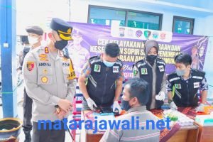 Kapolres Situbondo saat memantau tes urine supir bus dan cek