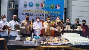Kapolresta bersama Kepala BNN dan Wakil walikota Malang saat menunjukan