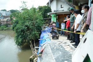 Pangdivif saat meninjau lokasi longsor di Muharto gang V B,