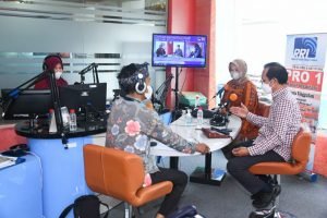 foto: Gubernur Khofifah bersama Gus Mifta Saat Tapping Acara Sahur Bareng di Jtv Surabaya matarajawali.net-Surabaya;