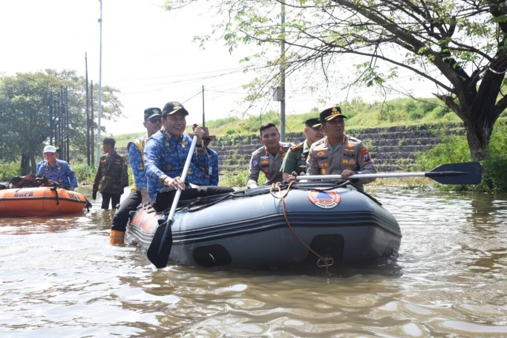 Bupati Sidoarjo H. Subandi beserta Kapolresta Sidoarjo Kombes Pol Christian Tobing dan Dandim 0816 Sidoarjo Letkol Inf Dedyk Wahyu Widodo melakukan Sidak kelokasi banjir.
