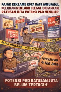 Matarajawali.net–Kota Batu; Pengelolaan pajak reklame di Kota Batu kembali menuai sorotan tajam. Berdasarkan hasil pemeriksaan