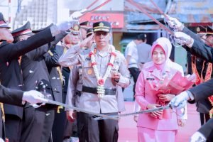 parade pedang pora sambut kedatangan Kapolres Situbondo AKBP Dwi Sumrahadi