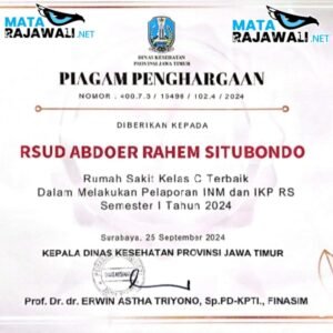 Matarajawali.net-Situbondo; Rumah sakit umum daerah RSUD Dr.Abdoee rahem meraih penghargaan