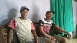 foto: Nurhuda (kaos putih) saat dikonfirmasi di rumahnya Jum’at (13/12)