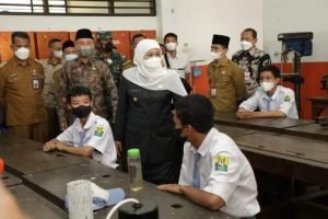 Foto: Gubernur Khofifah didampingi Kadindik Jatim Wahid Wahyudi ketika meninjau