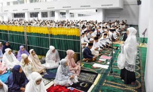 Foto: Gubernur khofifah memberikan sambutan saat teraweh pertama di Masjid