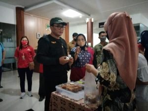 wakil walikota Malang mengunjungi salah satu stand produk umkm dalam
