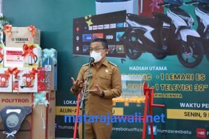 Wakil Walikota Batu,Punjul Santoso saat memberikan sambutan dalam pengundian gebyar