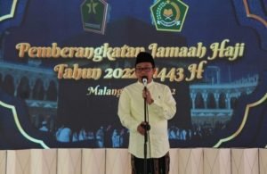 Walikota Malang,Sutiaji memberikan sambutan saat pelepasan jemaah haji kota Malang