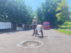 matarajawali.net – SITUBONDO; Salantas Polres Situbondo memberi tanda jalan rusak