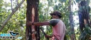 Matarajawali.net-Bondowoso; Produksi getah yang dihasilkan melalui proses penyadapan pohon pinus