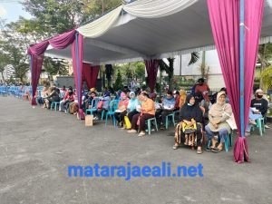 warga kecamatan Klojen antri untuk menerima BLT subsidi minyak goreng