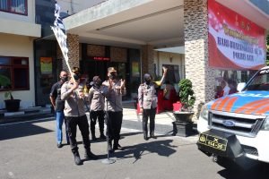 Kapolres Batu saat melepas kendaraan dinas yang berangkat menyerahkan bantuan