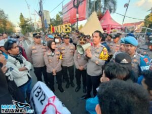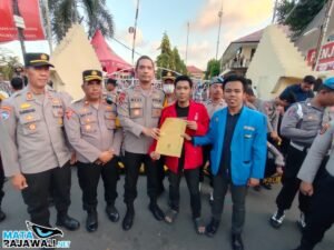 Kapolres Situbondo AKBP Rezi Dharmawan, S.I.K., M.I.K. hadir langsung dan menerima aspirasi mahasiswa menyampaikan apresiasi atas aksi yang berlangsung damai,tertib dan kondusif serta menegaskan sudah mendengar dengan baik pernyataan sikap dari PMII dan GMNI Situbondo.