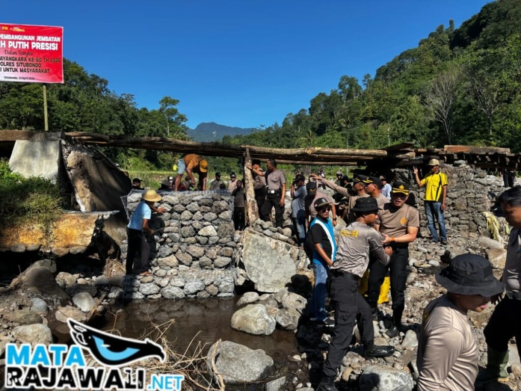 Matarajawali.net–SITUBONDO — Pembangunan Jembatan Merah Putih Presisi kini menjadi wujud nyata harapan baru bagi warga dan anak-anak sekolah di wilayah pelosok Desa Kembangsari, Kecamatan Jatibanteng. Demi mewujudkan akses vital tersebut, Polres Situbondo melaksanakan bakti sosial (baksos) pengerjaan fisik jembatan secara gotong royong pada Sabtu (25/4/2026) pagi.