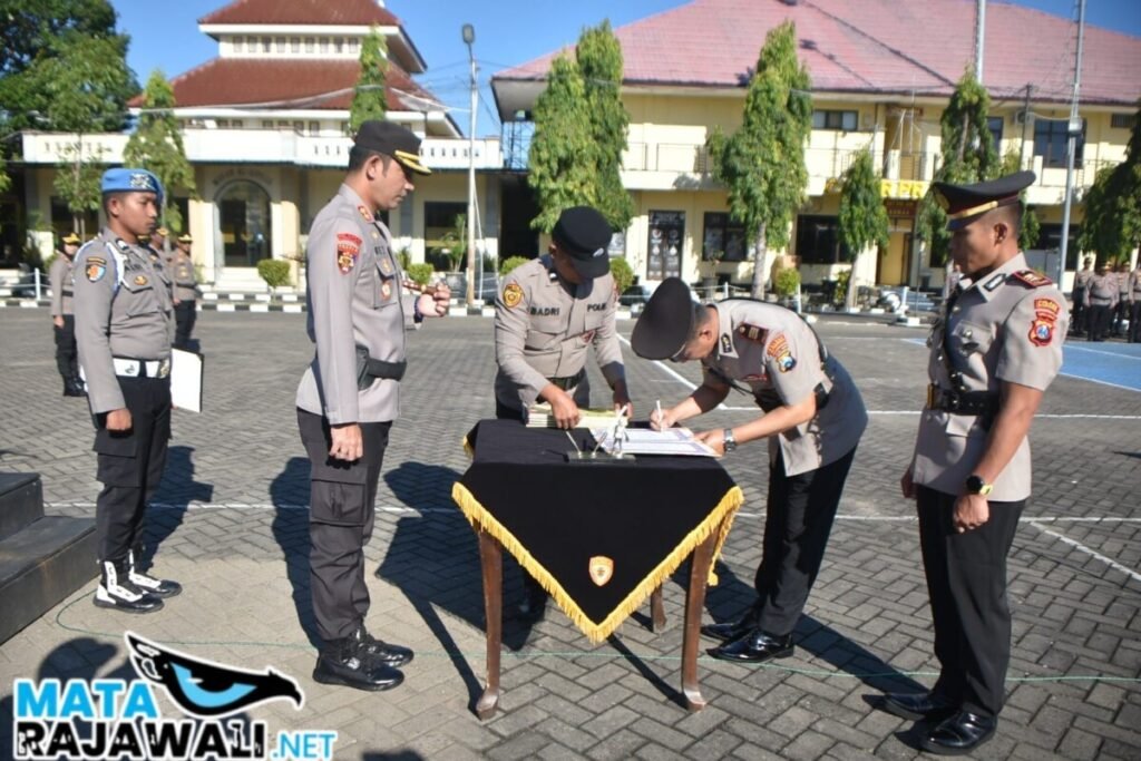 matarajawali.net – Situbondo; Dalam rangka penyegaran organisasi dan peningkatan kinerja, Kapolres Situbondo AKBP Rezi Dharmawan, S.I.K., M.I.K. memimpin langsung upacara serah terima jabatan (Sertijab) sejumlah Kasubbag, Kasat dan Kapolsek Jajaran, bertempat di halaman apel Polres Situbondo, Kamis (11/7/2025).