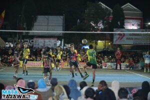 Ratusan penonton memadati lapangan voli saat pertandingan final berlangsung seru dan menegangkan, khususnya pada kategori umum putra yang menyedot antusiasme tinggi.