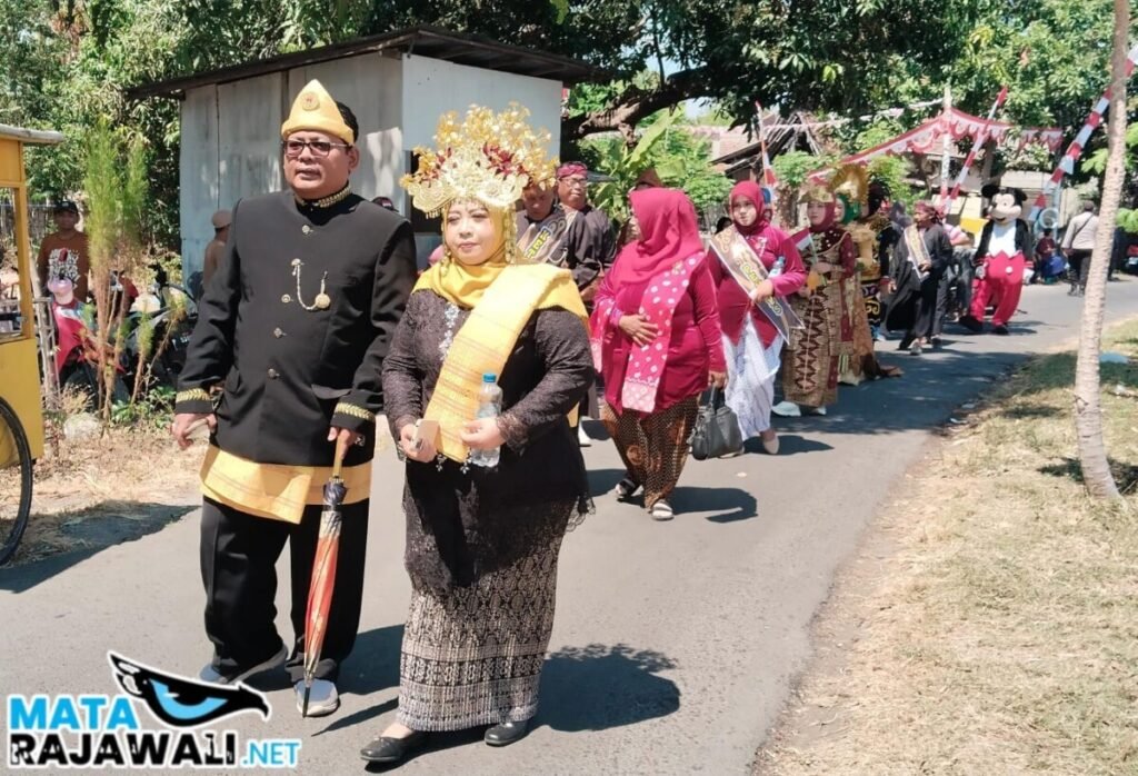 matarajawali.net – Situbondo; Semangat kemerdekaan Indonesia HUT RI ke-80 terasa begitu kental di Desa Curah Jeru. Tidak hanya warga, Kepala Desa Curah Jeru, Bapak (*Sandi*) bersama Istri), pun turut berpartisipasi aktif dalam pawai karnaval yang digelar hari ini, dalam rangka memeriahkan Hari Ulang Tahun Republik Indonesia ke-80. Kehadiran beliau menjadi penyemangat tersendiri bagi seluruh peserta pawai.