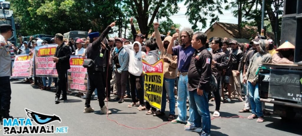 matarajawali.net – Situbondo; Aksi damai dengan tuntutan penutupan perusahaan stockpile serbuk kayu di desa Banyuglugur oleh warga yang terdampak dan sidak terhadap semua galian C di kabupaten Situbondo dilakukan oleh warga desa Banyuglugur dikawal langsung oleh ketum LSM Siti Jenar bang Eko Febrianto, LSM Teropong Wahyudi dan tim serta LBH Cakra bang Opek dan tim mendatangi Kantor Pemkab Situbondo dan DPRD Situbondo (Senin, 15 September 2025).