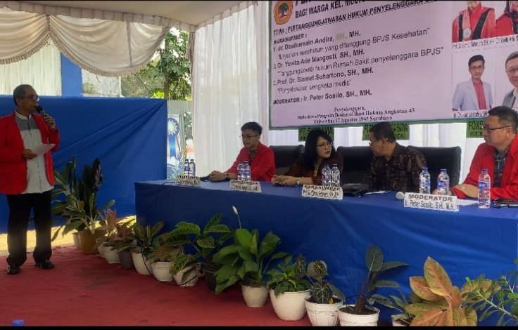 Dengan mengambil tema “Pertanggungjawaban Hukum Penyelenggara BPJS”, acara ini menghadirkan narasumber Dekan Fakultas Hukum Untag Prof. Dr. Slamet Suhartono, SH, MH., Kepala Program Studi (Kaprodi) Ilmu Hukum Untag Dr. Yovita Arie Mangesti, SH, MH., dan dr. Dzulkarnain Andira, MH. Dan dipandu oleh Komisaris Klinik Syifa Husada, Ir. Peter Sosilo, SH, MH, yang juga sebagai moderator.