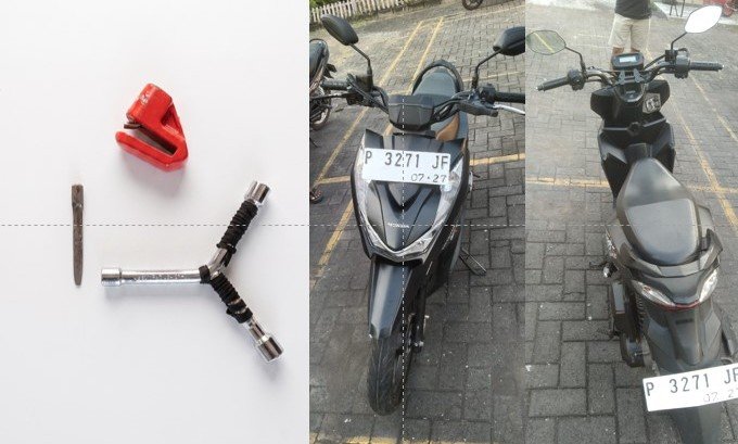 Dari lokasi penemuan motor, petugas tidak hanya mengamankan kendaraan milik korban. Polisi juga menyita sejumlah barang bukti yang ditinggalkan oleh pelaku saat kabur, di antaranya seperangkat kunci T yang digunakan untuk merusak kontak motor, sebuah jaket hitam, serta dua lembar sarung berwarna hitam.