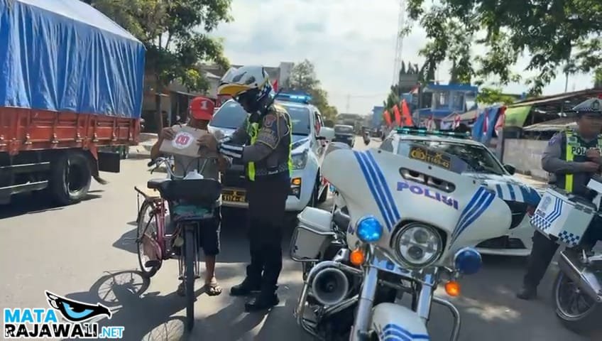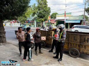 matarajawali.net – Situbondo; Di tengah teriknya siang, personel Satlantas Polres Situbondo tak hanya fokus mengatur arus lalu lintas, tetapi juga menyapa dan mengulurkan tangan bagi masyarakat yang membutuhkan. Dipimpin langsung Kasat Lantas Polres Situbondo AKP Nanang Hendra Irawan, S.H., M.H., kegiatan patroli kali ini dirangkai dengan aksi sosial membagikan makan siang kepada pekerja jalanan, Jumat (15/8/2025).