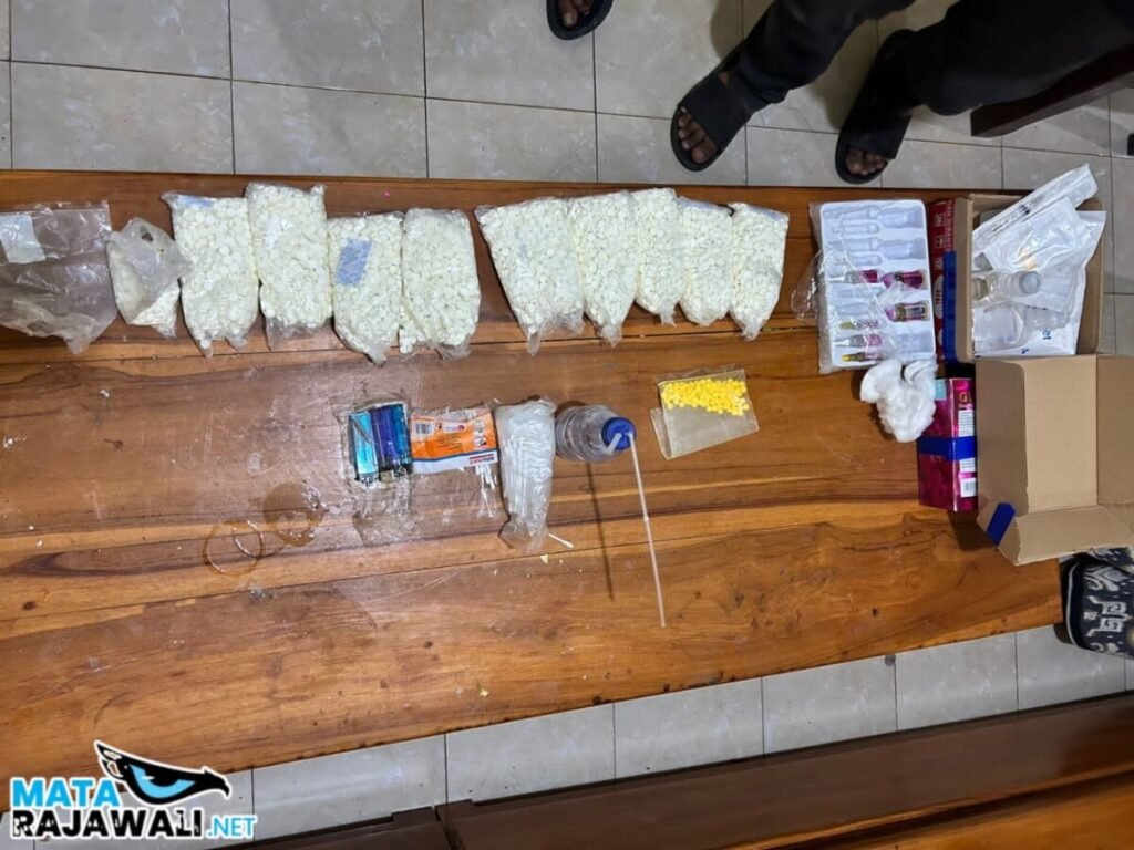 “Dari tangan pelaku A, kami berhasil mengamankan 9.432 butir pil trex, 146 butir pil distro, sejumlah handphone, uang tunai, bahkan satu buah senjata tajam jenis pisau. Sementara dari pelaku F, kami temukan 25 butir pil trex, uang tunai hasil transaksi, serta barang-barang pribadi lainnya,” jelas AKP Febry.