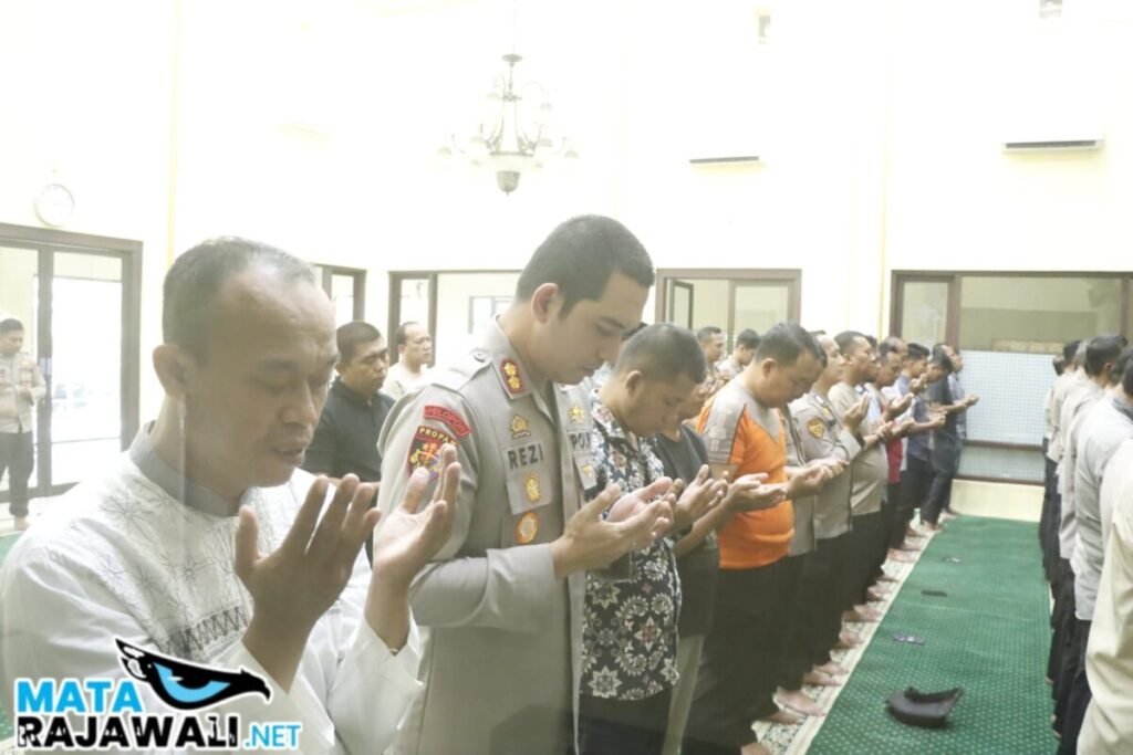 matarajawali,net – Situbondo; Suasana haru dan khidmat terasa di Masjid Al-Asykar Polres Situbondo, Jumat (29/8/2025). Seluruh jajaran kepolisian bersama masyarakat seusai Sholat Jumat dilanjutkan melaksanakan Sholat Ghoib dan doa bersama untuk almarhum Affan Kurniawan.