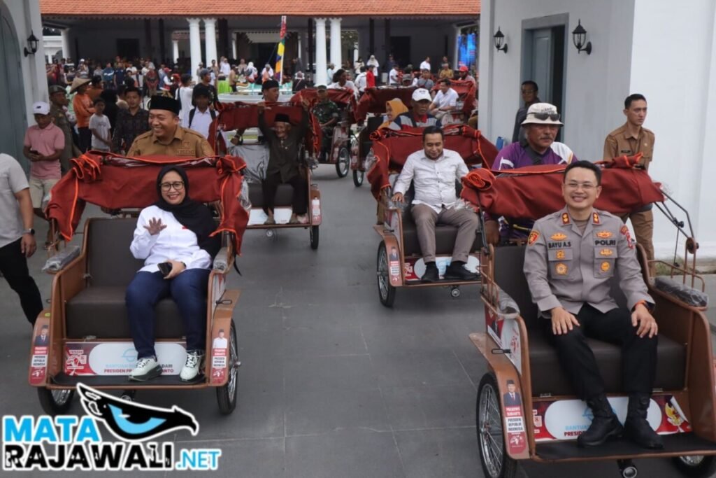 Matarajawali.net–SITUBONDO; Suasana Alun-Alun Besuki, Kabupaten Situbondo, tampak berbeda pada Senin sore (26/1/2026). Ratusan abang becak berkumpul untuk menerima bantuan Becak Listrik dari Presiden Prabowo Subianto yang disalurkan oleh Yayasan Gerakan Solidaritas Nasional (GSN).