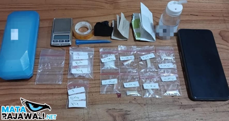 Dari tangan tersangka, polisi menyita total sabu dengan berat kotor mencapai 2,77 gram. Selain barang haram tersebut, petugas juga mengamankan barang bukti pendukung lainnya seperti satu buah timbangan elektrik, sendok sabu dari sedotan, alat isap (bong), kotak kacamata warna biru yang digunakan untuk menyimpan paket sabu, serta satu unit ponsel.