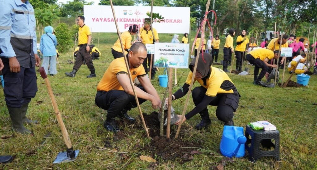 Tanam pohon bagian dari Gerakan Peduli Lingkungan yang digelar bersama Yayasan Kemala Bhayangkari Cabang Kota Malang, bersinergi dengan Perumda Tugu Tirta dan Dinas Lingkungan Hidup (DLH) Kota Malang.