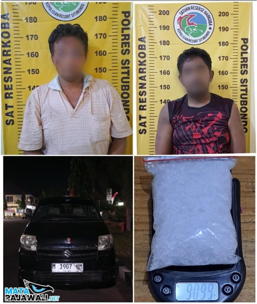 Barang bukti yang diamankan dari tangan tersangka antara lain sabu seberat 90,99 gram, satu unit mobil Suzuki APV warna hitam, dua unit Handphone, satu jaket abu-abu, serta perlengkapan lain yang diduga digunakan untuk menyimpan narkotika. Seluruh barang bukti bersama kedua tersangka langsung dibawa ke Mapolres Situbondo untuk proses hukum lebih lanjut.