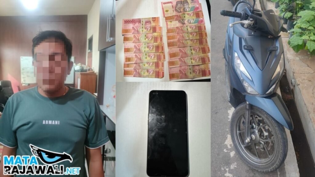 Dari tangan pelaku, Tim Resmob menyita sejumlah barang bukti berupa 1 unit HP OPPO Reno 4 S warna biru muda, uang tunai sebesar Rp 1.500.000, 1 dompet merek Crocodile warna hitam, serta 1 unit sepeda motor Honda Beat warna biru.