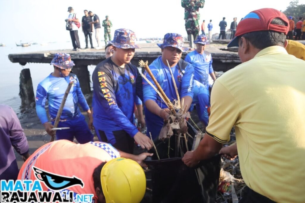 Matarajawali.net–SITUBONDO; Personel gabungan dari unsur TNI, Polri, Pemerintah Kabupaten Situbondo, Kecamatan, Desa hingga pelajar terjun langsung melakukan kerja bakti membersihkan sampah di pesisir pantai utara Situbondo tepatnya di kawasan Dermaga Lama Panarukan, Desa Kilensari, Kecamatan Panarukan, Kamis pagi (12/2/2026).